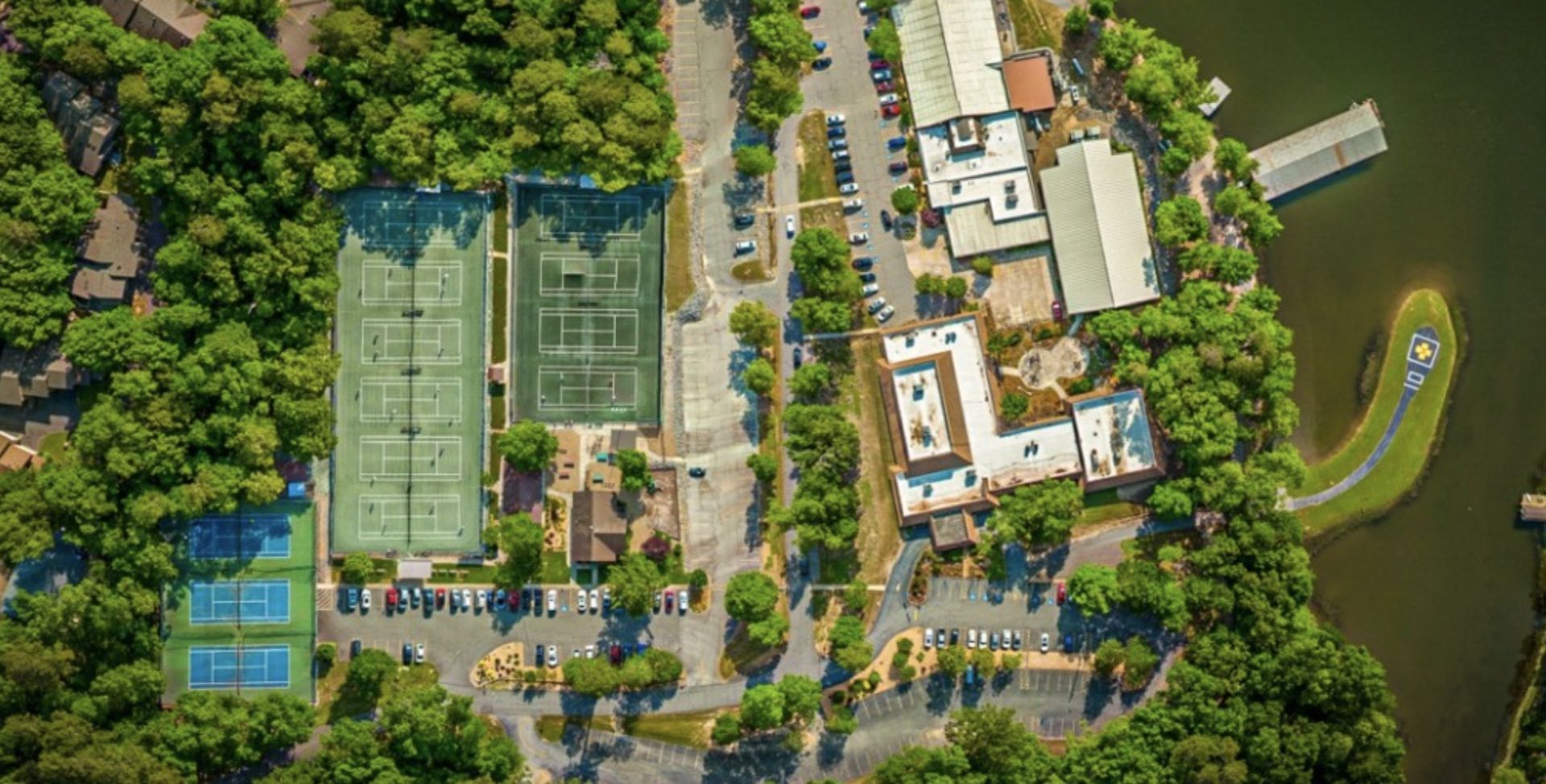 A staffed clubhouse provides rental equipment, snacks and drinks and reservations. The facility includes a park with a playground, basketball courts, and an 18-hole mini-golf course.